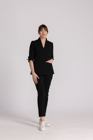 Îmbunătățește-ți experiența profesională prin Costumul Medical Elastic Elise, o alegere perfectă pentru cei care caută eleganță și funcționalitate în mediul de lucru. Acest costum medical este proiectat să ofere nu doar stil, ci și confort și practicitate.